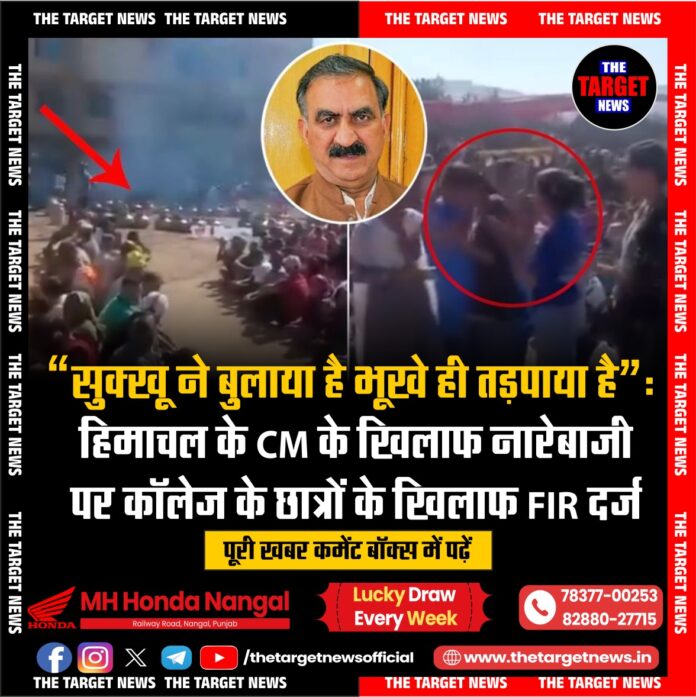(Sukhu Called, But Left Us Hungry: FIR Against College Students for Sloganeering in Himachal)हिमाचल प्रदेश की सोलन पुलिस ने कई निवासियों और छात्रों, जिनमें सरकारी कॉलेज दाड़लाघाट की कुछ छात्राएं भी शामिल हैं, के खिलाफ FIR दर्ज की है, जब हाल ही में मुख्यमंत्री सुखविंदर सिंह सुखू के दाड़लाघाट दौरे के दौरान नारेबाजी की सूचना मिली।