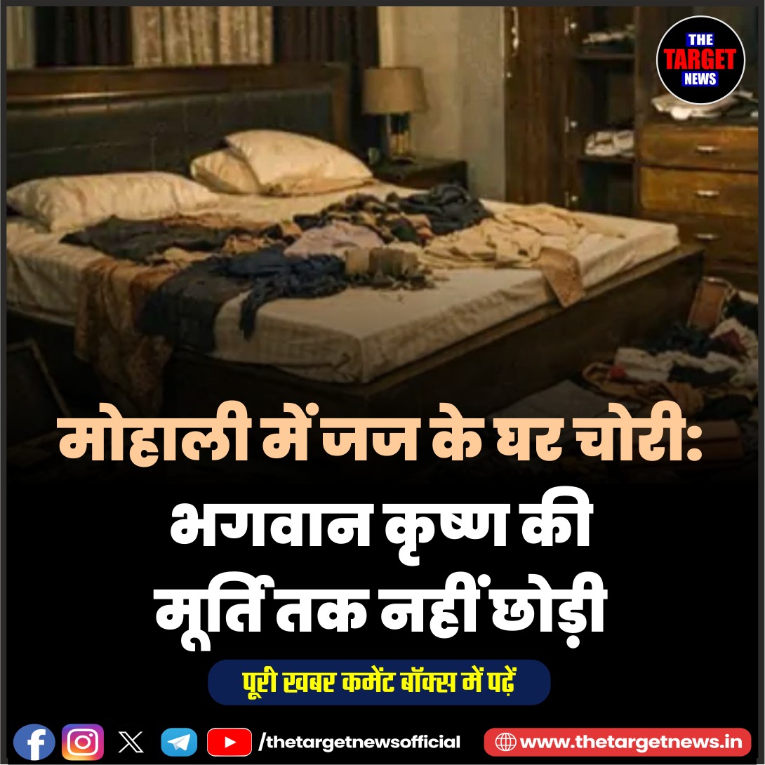 (Theft at Judge’s House in Mohali: Even Lord Krishna’s Idol Was Not Spared) मोहाली से एक चौंकाने वाली चोरी की घटना सामने आई है, जिसने सुरक्षा व्यवस्था पर गंभीर सवाल खड़े कर दिए हैं। सेक्टर 94 में स्थित एक सेशन जज के घर में चोरों ने बड़ी वारदात को अंजाम दिया। बताया जा रहा है कि घर करीब 15 दिनों से बंद था, जिसका फायदा उठाकर चोरों ने आसानी से घर में घुसकर पूरी तरह तलाशी ली और कीमती सामान लेकर फरार हो गए।