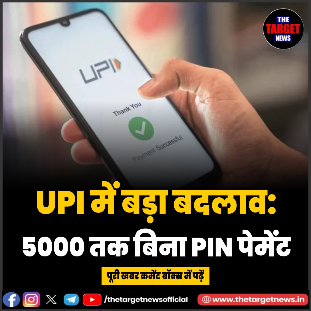 Big Change in UPI: Payments up to ₹5000 without PIN डिजिटल पेमेंट को और आसान और तेज बनाने के लिए नेशनल पेमेंट्स कॉरपोरेशन ऑफ इंडिया (NPCI) ने UPI सिस्टम में एक बड़ा बदलाव किया है। अब यूजर्स को छोटे ट्रांजेक्शन के लिए हर बार UPI PIN डालने की जरूरत नहीं पड़ेगी। नए अपडेट के तहत अब 5000 रुपये तक की पेमेंट फेस आईडी या फिंगरप्रिंट जैसे बायोमेट्रिक ऑथेंटिकेशन के जरिए की जा सकेगी। इससे भुगतान प्रक्रिया पहले से ज्यादा तेज और सुविधाजनक हो जाएगी।