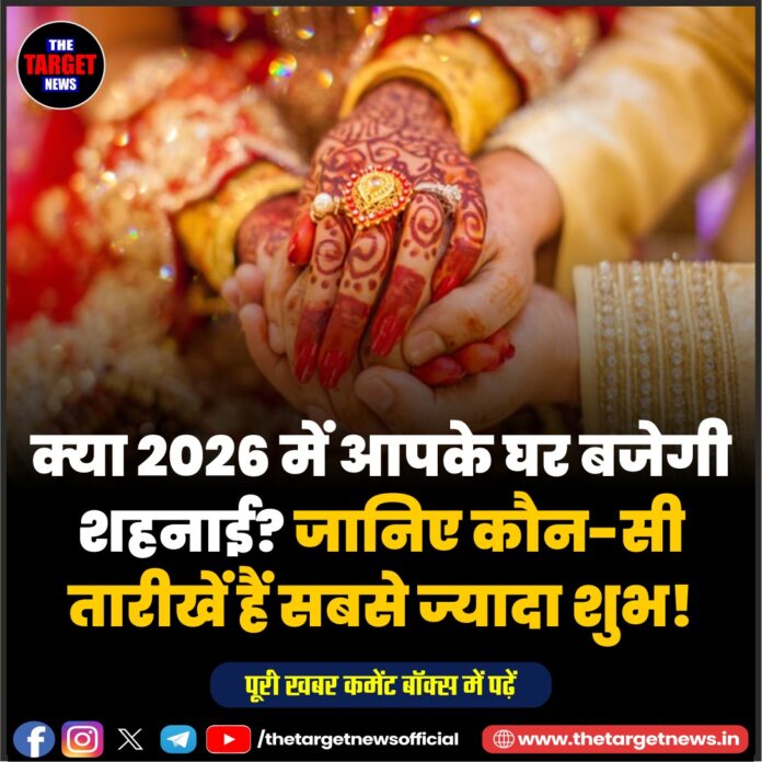 (Wedding Muhurats 2026 Announced)साल 2026 शादी-विवाह के लिहाज से बेहद खास रहने वाला है। नए साल में एक बार फिर शहनाइयों की गूंज सुनाई देगी और हजारों घरों में खुशियों का माहौल बनेगा। हिंदू धर्म में शुभ मुहूर्तों का विशेष महत्व होता है। किसी भी मांगलिक कार्य से पहले शुभ समय देखना परंपरा का अहम हिस्सा माना जाता है। मुंडन, सगाई, नामकरण, गृह प्रवेश से लेकर विवाह तक—हर संस्कार शुभ मुहूर्त में करना ही शुभ फलदायी माना जाता है।